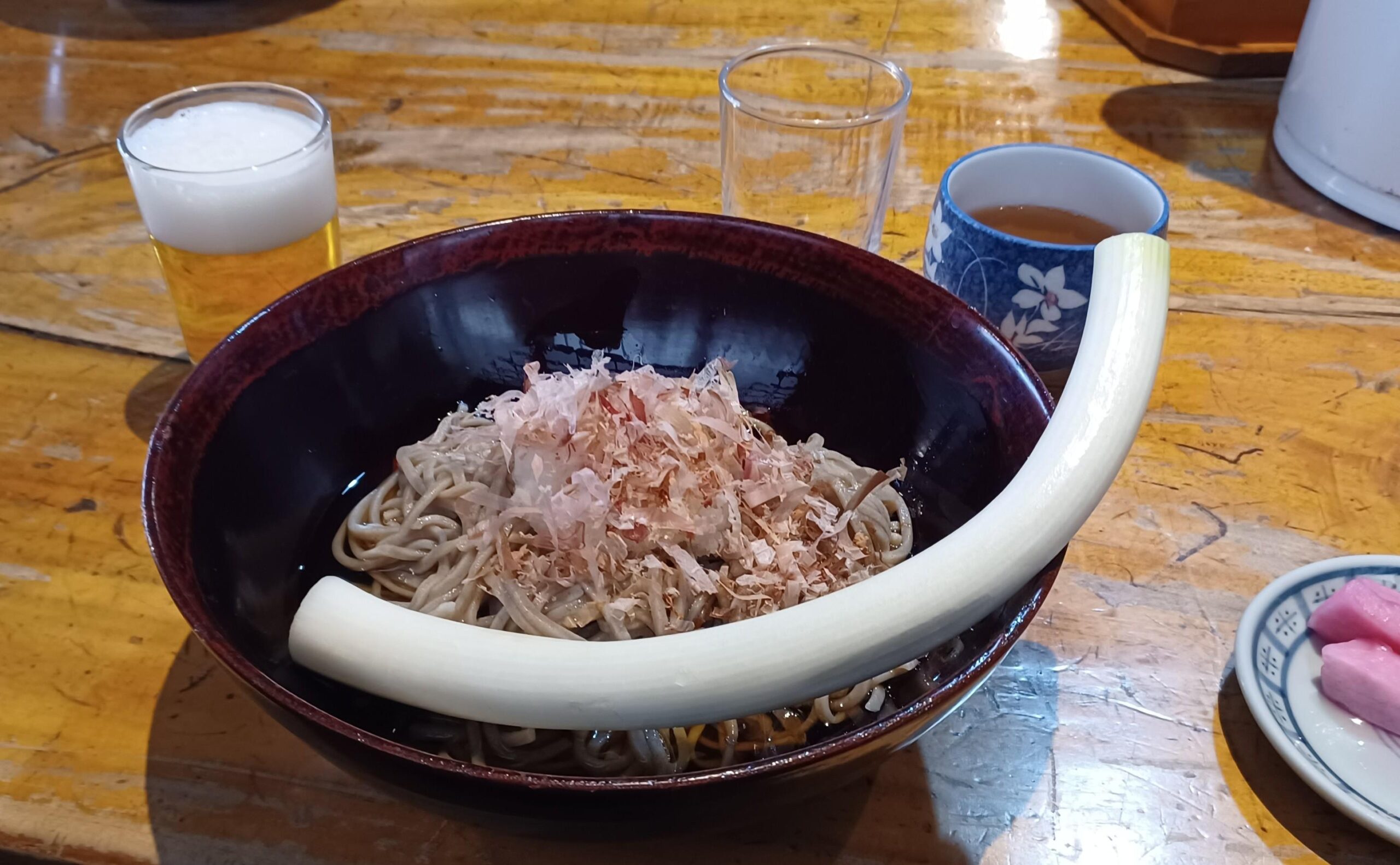 大内宿といえば「ねぎ蕎麦」。ねぎ一本でそばを食べます。おいしかった。