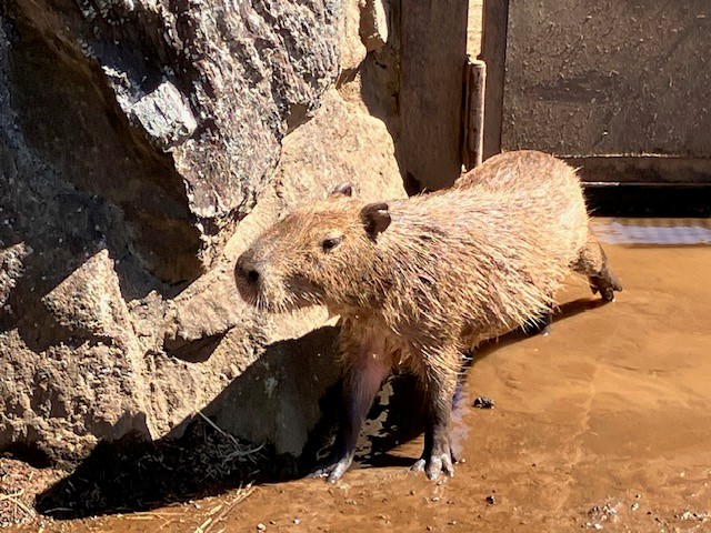 カピバラの原産地は南米。草食動物なので警戒心が強い。こんな気が利いたカピバラは珍しい。きっと同動物園で行われている動物と人間のふれあいを経験したからに違いない。