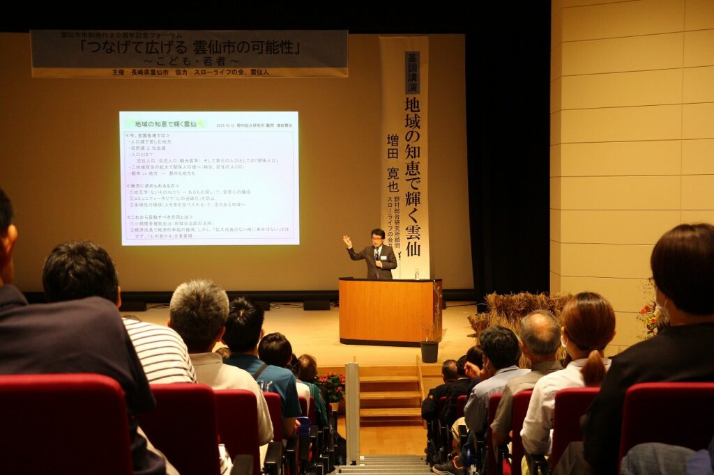 過去20年を振り返り、「子ども・若者」のに触れながら、市民と行政が一緒に未来の雲仙市について考える機会となった。増田寛也先生の基調講演とパネルディスカッションを通じて、一言で言うと人口減少が避けられない地方自治体にとって、市民が活躍することが重要であるというメッセージをいただいた気がします。
