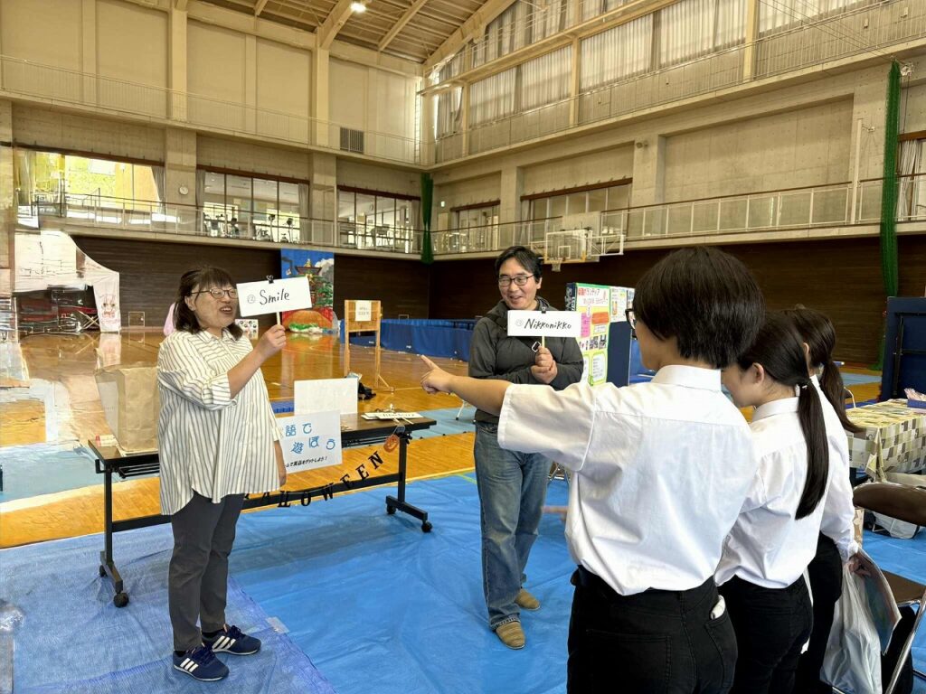 「子どもたちに英語に親しんでもらう」をテーマに体験メニューを考えあぐねた結果、日光市にちなんだ言葉の英訳を並べて、どれが正しいかを当てるクイズを実施することに。メインの対象が中学生なので、そのレベルに合わせ、問題は「杉並木」の「杉」は、「ceder」と「pine」どちらが正しいか? 「中禅寺湖」の「湖」は、「lake」と「like」どちらが正しいか? などです。