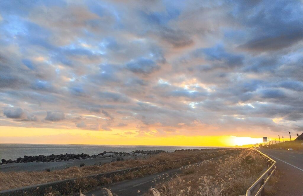 ※写真は、静岡市の久能海岸、駿河湾の夕陽。会員・ほんだゆかりさん写す。