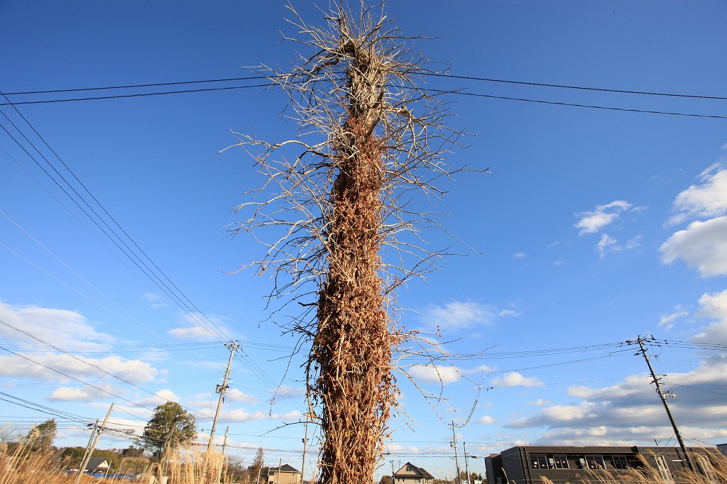 昨年はまだ電柱部分がわずかに見えていた。今年はこの姿。果たして機能しているのか?(2026年1月、福島県大熊町)